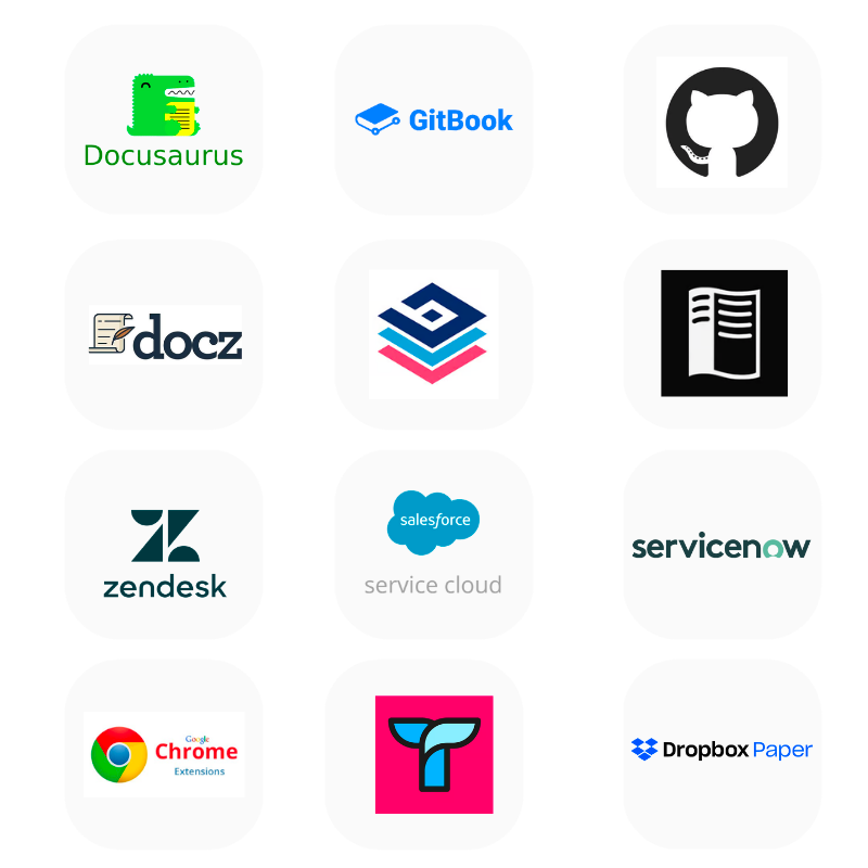 Twigs data pipelines integrate with most popular documentation and knowledgebase products.